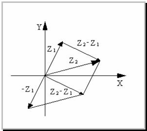 Разности Z2 – Z1 комплексных чисел Z1 и Z2, соответствует разность векторов, соответствующих числам Z1 и Z2. Модуль