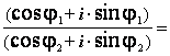 (cosj1 + i·sinj1)×( cos(–j2) + i·sin(–j2)) =