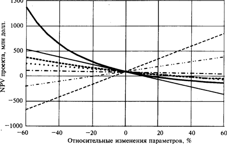 Рис.2. Чувствительность NPV к относительным изменениям параметров: