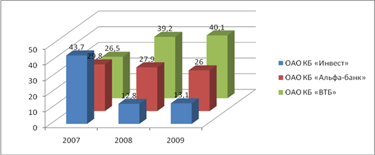 Таким образом, из представленных данных видно, что основным кредитором компании ООО «Челябоблстрой» выступает ОАО Коммерческий банк «ВТБ», который кредитует организация, как путем предоставления долгосрочных кредитов, так и путем краткосрочного кредитования. Занимает в общем объеме задолженности с 26% в 2007 году, до 40,1% в 2009 году, что свидетельствует о стабильной работе компании с данным банком.