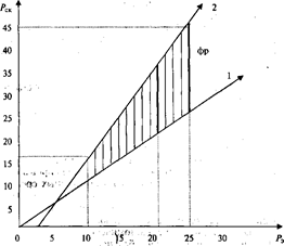 Линия 1 характеризует зависимость рентабельности собственного капитала от экономической рентабельности при условии финансирования за счет собственных средств (бездолговое финансирование). При таком финансировании постоянные финансовые издержки (плата за кредит) отсутствуют, поэтому прямая берет начало в точке 0.