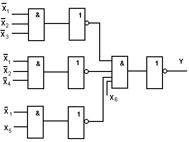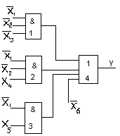y=x1x2x3vx1x2x4vx1x5vx6 (МДНФ)
