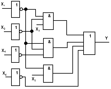 При построении схемы с однофазными входами целесообразно выбирать такую минимальную форму (если она не единственная) которая содержит наименьшее число инверсий над разными элементами.
