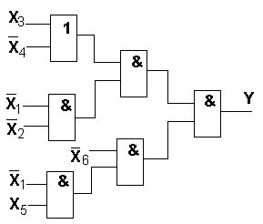 y=x1x2x3 v x1x2x4 v x4x5 v x6= x1x2(x3v x4)v x4x5v x6=