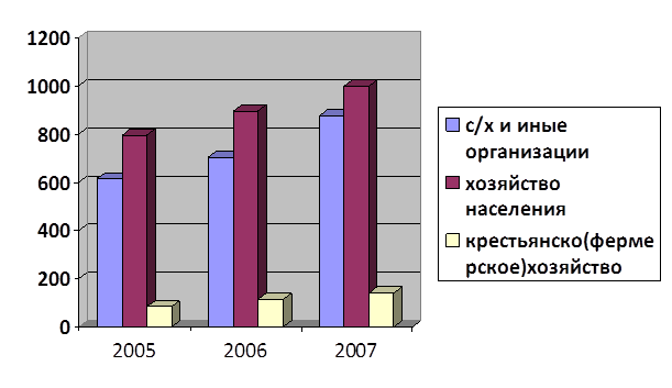 Изучив таблицу, мы видим, что сельскохозяйства и иные организации в 2005году составляла денежная масса 615,6млрд.руб.,а в 2007году 875,9млрд.руб., следовательно за 2а года денежная масса возросла на 260.3млрд.руб.Хозяйство населения в 2005году составляло 794,5млрд.руб.,а в 2007году составило 1001,1млрд.руб.,из этого следует, что денежная масса хозяйства населения возросла на 206.6млрд.руб.за 2а года. И наконец крестьянское (фермерское) хозяйство за 2а года возросло на 56.2млрд.руб. На основание данных таблицы, следует, что денежная масса сельско хозяйственной промышленности с каждым годом возрастает, причём во всех категориях хозяйств. Также в данной таблице показана денежная масса хозяйства всех категорий: в 2005году она составляло 1494,6, в 2006году 1711,3 и наконец в 2007году 2017,2.