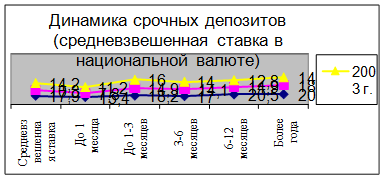 Рис.2.6. Динамика средневзвешенной ставки срочных депозитов в национальной валюте