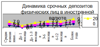 Проведем сравнительный анализ в динамике по срочным депозитам в национальной и иностранной валюте для различных категорий вкладчиков и по разным срокам привлечения, используя данные таблицы 2.2. Для наглядности используем графический метод отображения информации (рис.2.4 –2.9.).