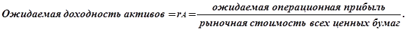 Ожидаемая доходность активов фирмы определяется как отношение ожидаемой операционной прибыли к совокупной рыночной стоимости ее ценных бумаг (в т.ч. и долговых):