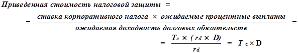 В общем виде приведенная стоимость налоговой защиты будет составлять: