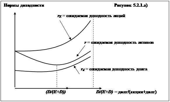 Соотношения стоимости собственного, заемного и совокупного капитала при учете корпоративного налогообложения приведены на Рисунке 5.2.1а).