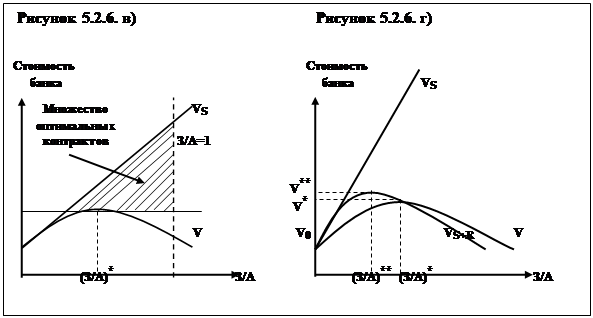 Таким образом, ФКСД стала определять явную плату за страхование только из множества "оптимальных контрактов" и ввело неявное страхование. Множество "оптимальных контрактов" по страхованию депозитов представлено на Рисунке 5.2.6.в). Данное множество ограничено прямыми V, VS и З/А=1, причем если кривые V и VS принадлежат данному множеству, то прямая З/А=1 не принадлежит ему. (Данное обстоятельство означает, что банки должны иметь ненулевой собственный капитал).