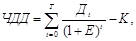 Вышеуказанная формула расчета ЧДД предполагает ситуацию «разовые затраты – длительная отдача». В случае, когда возникает ситуация «длительные затраты – длительная отдача», т.е. когда инвестиции осуществляются не единовременно, а по частям – на протяжении нескольких временных периодов (месяцев, кварталов, лет) формула примет иной вид: