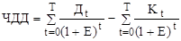 Важнейшим показателем эффективности проекта является чистый дисконтированный доход (другие названия – ЧДД, интегральный эффект, Net Present Value, NPV) – накопленный дисконтированный эффект за расчетный период. Он рассчитывается по формуле