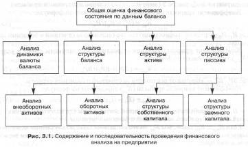 На практике используют такие методы, как пространственный (горизонтальный) и структурный (вертикальный) анализ баланса. Его содержание и последовательность представлены на рис. 3.1.