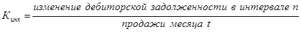 Коэффициент инкассации выражает процент ожидаемых денежных поступлений от продаж в определенном интервале времени от момента реализации продукции. Его устанавливают по следующей формуле[23]: