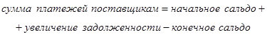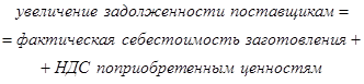Увеличение задолженности поставщикам устанавливают исходя из объема поступлений материальных ценностей, тогда:
