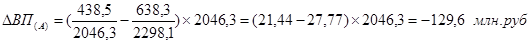 ∆ВП{А) = 438,5 - (638,3 х 0,89) = 438,5 - 568,1 = -129,6 млн. руб.