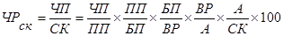 где ЧРск — чистая рентабельность собственного капитала (процент или доли единицы); ЧП — чистая прибыль за расчетный период; СК — собственный капитал на последнюю отчетную дату (раздел III баланса); ВР — выручка от реализации продукции (без косвенных налогов); А — активы на последнюю отчетную дату.
