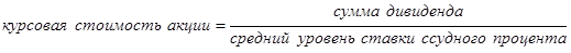 Из формулы (105) следует, что курсовая стоимость акции прямо пропорциональна сумме дивиденда и обратно пропорциональна ставке ссудного процента (например, по депозитным счетам).