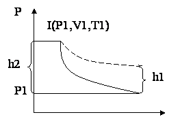Рассмотрение процесса начнём с того момента, когда температура и давление в баллоне установились. Выделенная часть воздуха в баллоне в начале процесса будет характеризоваться P1 (выше атмосферного), V1, T1 (температура окружающей среды), что соответствует точке I на диаграмме состояний.