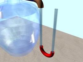 С помощью насоса в баллон накачивают некоторую массу воздуха. В следствии произведённой работы (при накачивании) воздух в баллоне нагреется. До начала опыта необходимо подождать несколько минут, чтобы в результате теплообмена температура в баллоне сравнялась с температурой окружающей среды. При этом давление в баллоне несколько снизится, т.к. давление пропорционально температуре (P=nkT).