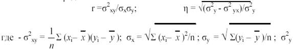 Значения этих коэффициентов колеблются от 0 до 1. При η(r)= 0 связь межу показателями отсутствует, если η (r) = 1, то связь функциональная. Если η (r) имеет отрицательное значение, то связь между показателями отрицательная.