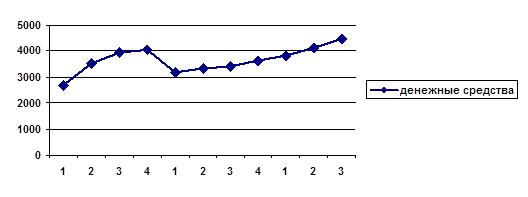 Выручка от продажи продукции на1 квартал 2004 года составила 2690 тыс.руб, за год её поступление увеличилось практически в 1,5 раза достигнув значения 4065 тыс.руб. В начале 2005 г. можно отметить спад в поступлении денежных средств ( в 1 квартале – 3132 тыс.руб, во 2 квартале 3323 тыс.руб, в 3 квартале 3402 тыс.руб и в 4 квартале 3654 тыс.руб. В 2006 году наблюдается увеличение поступления денежных средств. Так в 3 квартале их сумма составила 4487 тыс.руб. Общий темп прироста за анализируемый период поступления денежных средств составил 67 %