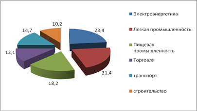Рис. 2.7. Структура кредитного портфеля отраслей, ориентированных на внутренний рынок в среднем за анализируемый период, %*