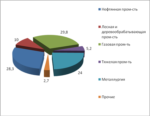 Эти факторы определяли положительную тенденцию предоставления кредитов именно в рублях [18, с. 22]. В структуре экспортно-ориентированных отраслей наибольший удельный вес объемов кредитования в среднем за анализируемый период занимают нефтяная промышленность – 28,8%; металлургия – 28,3%; и газовая промышленность – 24% ( рис 2.2).