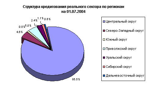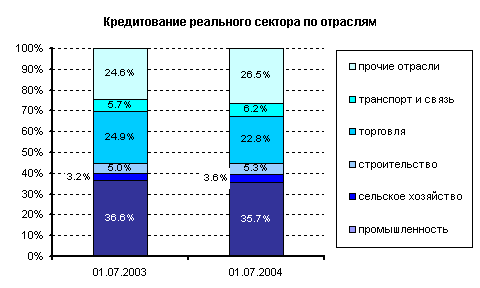 Промышленность на 1 июля 2004г. получила $30,8 млрд., при этом ее доля в общем объеме кредитования российским банковским сектором сократилась до 35,7% (см. Рисунок 2).