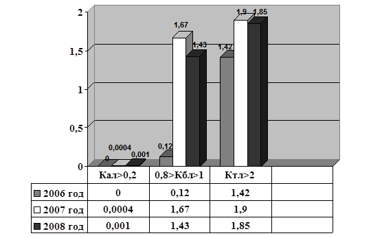 В 2006 году значение коэффициента реальных активов (Кра) соответствует нормативному, а его снижение в последующий период свидетельствует о потере производственной мощности предприятия.