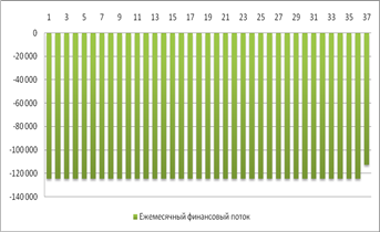 Рисунок 12 Ежемесячные финансовые потоки при покупке с использование схемы финансового лизинга