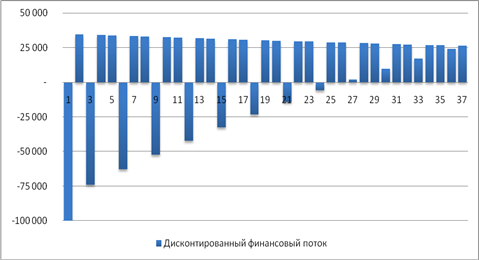 Рисунок 14 Дисконтированные финансовые потоки при покупке за счет средств кредита