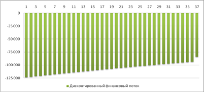 Рисунок 15 Дисконтированные финансовые потоки при покупке с использование схемы финансового лизинга