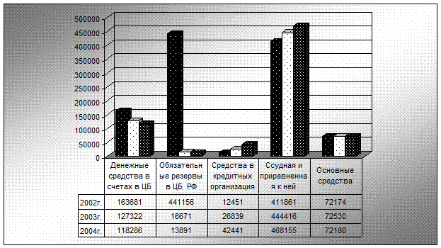 Проанализируем изменение динамики активов (Приложение 1). Изменения в структуре и динамике активов Ноябрьского городского банка за период 2002-2004гг.: