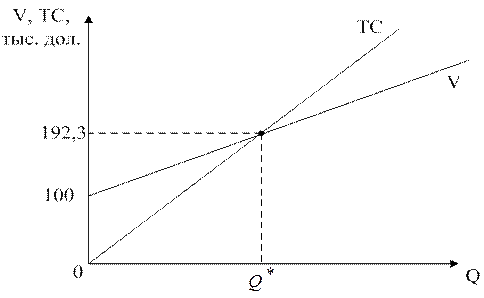 Из приведенных выше выражений видно, что при Q=0 выручка V=0, а издержки