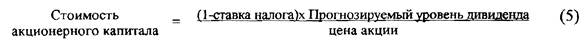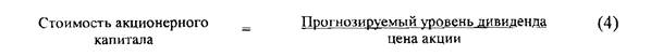 Применяя данную формулу в отечественной практике, отметим два существенных, на наш взгляд, момента. Во-первых, в условиях нестабильности политики и экономики предугадать уровень дивиденда достаточно проблематично. Во-вторых, если в международной практике дивиденды выплачиваются из прибыли, оставшейся после вычета налогов, то у нас доходы в виде дивидендов, полученных по акциям, подлежат налогообложению отдельно по ставке 15%.