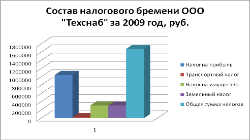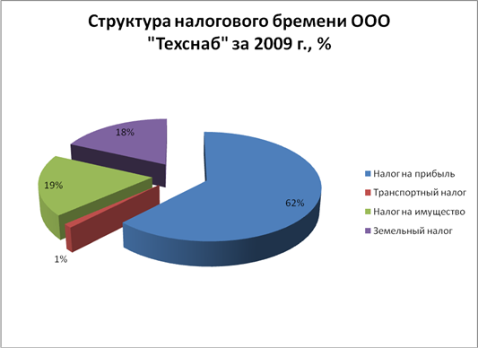 Таблица 8 – Анализ структуры общего налогового бремени ООО «Техснаб» за 2009 год