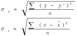 Где σх - квадратическое отклонение x от выравненных значений х(cp), а σy - среднее квадратическое отклонение признака y от выравненных значений y΄, или стандартизированная ошибка аппроксимации;