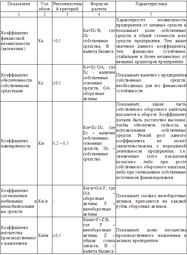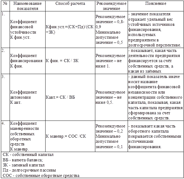 Анализ финансовой устойчивости организации осуществляется на основании данных о наличии собственных и привлеченных в оборот средств и характеризует степень независимости организации от рынка ссудных капиталов. Оценка финансовой устойчивости организации основывается на расчете следующих коэффициентов, представленных в таблице 2.