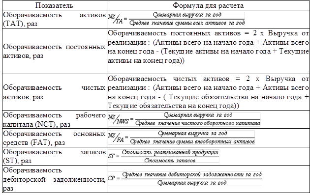 В части оценки оборачиваемости используются следующие показатели (таблица 5).