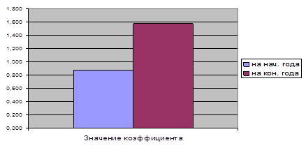 По данным таблицы видно, что коэффициент оборачиваемости активов в отчетном году увеличился на 0,657, что благоприятно повлияло на индекс кредитоспособности Альтмена. Можно заметить, что ни один коэффициент не изменился, кроме самого индекса кредитоспособности.