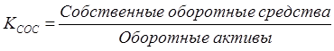 ¾ Рассчитывается коэффициент обеспеченности собственными оборотными средствами: