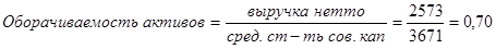 5.Оборачиваемость совокупного капитала (активов) | 0,70 | 0,67 | -0,03 |