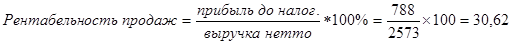 6.Рентабельность продаж (по бухгалтерской прибыли), % | 30,62 | 36,05 | +5,43 |