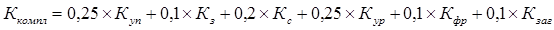 На основе данных показателей рассчитывается комплексный коэффициент банкротства: