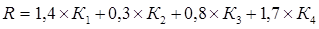 где С1…С4 – весовые значения коэффициентов при переменных, которые корректируются для каждой отрасли индивидуально.