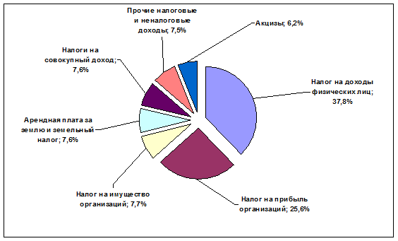 Объем консолидированного бюджета края на 2008 год формируют в основном, налоги на доходы физических лиц, на прибыль предприятий и организаций, на имущество юридических лиц, земельный налог, акцизы и арендная плата за землю. Доходы краевого бюджета составляют 74,1% от общего объема консолидированного бюджета Краснодарского края на 2008 год. [