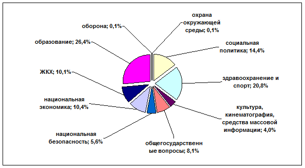 Структура расходов консолидированного бюджета Краснодарского края на 2008 год проиллюстрирована на рис.6. [28]