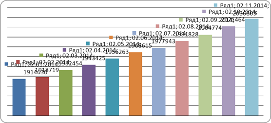 Динамика количества вкладчиков фонда по обязательным пенсионным взносам за 11 месяцев 2010 года представлена на Рисунке 4.